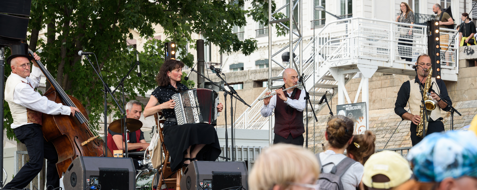 Le bal en planches des Gaspards ose passer de manière inattendue de l’ambiance bon enfant des flonflons parisiens à celle des cabarets new yorkais. Le bouillonnement musical latino américain se mélange à la fête tsigane et klezmer.