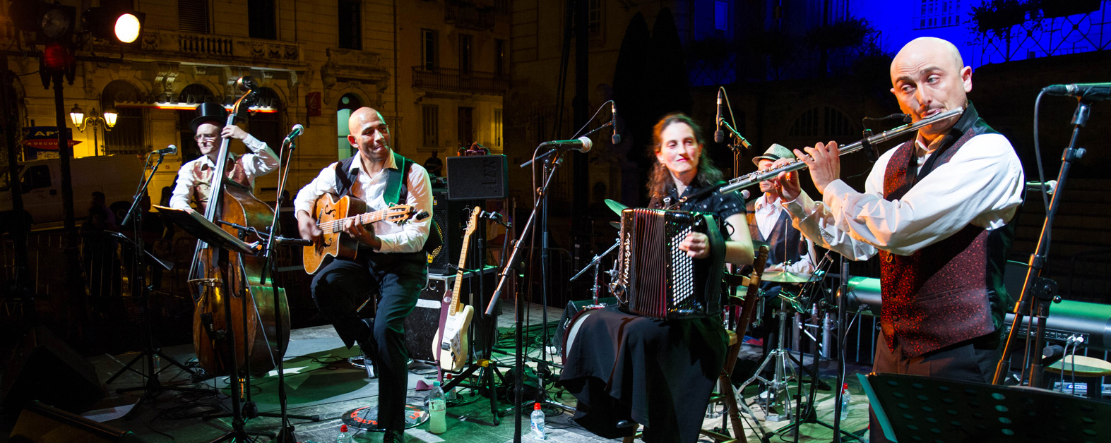 Avec un répertoire éclectique construit autour du bastringue le public découvre ou redécouvre la gouaille d’Edith Piaf, la poésie des chansons réalistes, le swing manouche de Django Reinhardt, les tangos passionnés de Carlos Gardel, les rythmes caribéens à la Tito Puente, les cumbias colombiennes entraînantes et les airs tsiganes explosifs. Les chansons sont accompagnées par l’accordéon, le vibraphone, les saxophones, la flûte, la contrebasse, la batterie et les percussions.